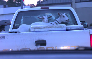 "No. I mean, YES. But we're behind a goat truck. It is hilarious!"